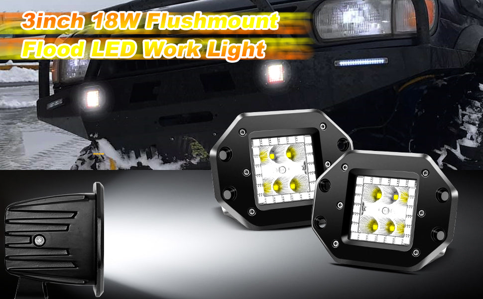 Superior-quality LED chips emit bright white light, effectively light up the forward dark road.Flush mount design gives the work light more protection and makes your off road vehicles look beautiful and cool